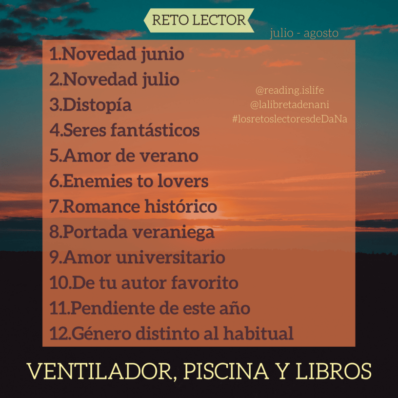 Os dejo mis lecturas de este reto veraniego. Podéis leer las reseñas haciendo clic en las portadas, por si os apetece cotillear mi opinión de cada uno: