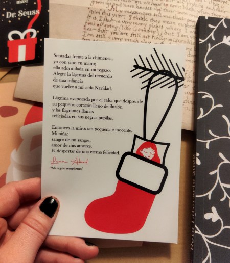 También se incluye una postal de Libreando Club. Por el otro lado se incluye este poema navideño de Lena Abad. No lo había leído antes, pero me ha parecido precioso. Quiero resaltar también la ilustración, que es muy bonita.